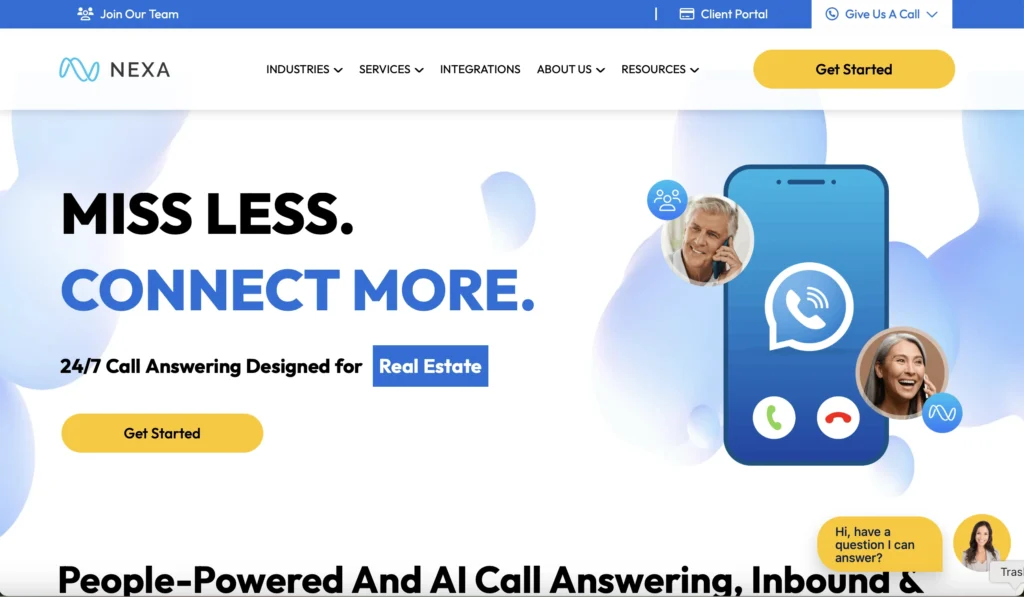 24/7 virtual receptionist and live chat provider with voice-plus-AI options. Nexa has a dedicated legal page and works with many law firms, though it serves multiple industries (not legal only).