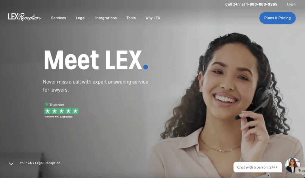 A legal only virtual receptionist with 24/7 call answering, intake, and scheduling – plus managed live chat. LEX focuses exclusively on law firms and positions itself as “your 24/7 legal reception.”